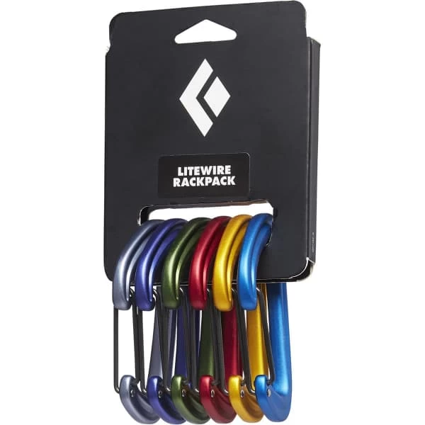 D’une fonctionnalité extrême, le LITEWIRE RACKPACK de BLACK DIAMOND est un lot de six mousquetons LiteWire à code couleurs correspondant aux Camalots pour un repérage facilité.