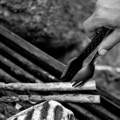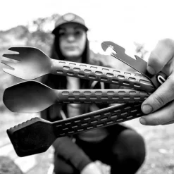 Le couvert Gerber Compleat sert non seulement Ă cuisiner et Ă mĂ©langer (notamment avec la spatule et les pinces) mais Ă©galement Ă manger (notamment avec la fourchette et la cuillère) ou Ă nettoyer (grâce au racloir siliconĂ© inclus) votre matĂ©riel de cuisine en plein bivouac ou en plein camping. Avec son poids adaptĂ© aux activitĂ©s de randonnĂ©e, de trekking et de survie, le Compleat Gerber peut vous accompagner dans tous vos dĂ©placements : poids total de 64 grammes. De fait, c’est un couvert de bivouac Ă la fois extrĂŞmement polyvalent et extrĂŞmement lĂ©ger. Il est aussi très robuste et il ne craint pas les tempĂ©ratures hautes : construction en nylon rĂ©sistant et en aluminium anodisĂ©. RĂ©capitulatif des diffĂ©rentes fonctions : fourchette, cuillère, couteau, spatule, pinces, ouvre-boĂ®te, dĂ©capsuleur, racloir et Ă©plucheur. Vous l’aurez compris : c’est bien plus qu’un simple couvert de camping.