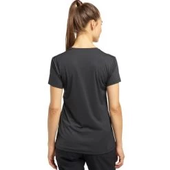 Le GLEE TEE W de la marque HAGLÖFS est un tee-shirt doux et résistant pour femme confectionné en polyester recyclé, extensible des quatre côtés.