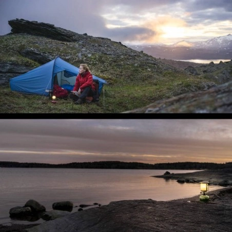 La lanterne Primus Mimer Lantern n’a que des avantages. Elle est silencieuse et réglable. Elle ne produit pas de suie. Elle diffuse de la lumière et de la chaleur de façon agréable et efficace sur votre table de camping ou à proximité de votre tente de bivouac. C’est une lanterne à gaz qui fonctionne avec n’importe quelle cartouche de gaz à valve avec filetage : utilisation possible dans le monde entier. Son allumage ne nécessite aucun briquet ou aucune allumette : la lampe Primus Mimer Lantern est dotée d’un allumage piézoélectrique. Enfin, cette lanterne de bivouac se transporte facilement et en toute sérénité : boîtier rigide de protection fourni d’office pour un rangement sûr de votre lanterne Primus.
