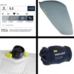 Le Trail Lite de Thermarest en version Regular a plusieurs cordes à son arc. C’est un bon matelas de camping et de bivouac mais également de randonnée et de trek grâce à sa compacité et son faible poids. Il a tout ce qu’il faut pour passer des nuits confortables sous la tente : une épaisseur suffisante (3,8 cm), une mousse autogonflante hautement compressible et un niveau de chaleur tout à fait honnête : R-Value de 3,2. De plus, le Trail Lite permet un gonflage environ 3 fois plus rapide que la normale grâce à sa valve WingLock : aucune perte de temps à l’installation de votre matelas autogonflant.