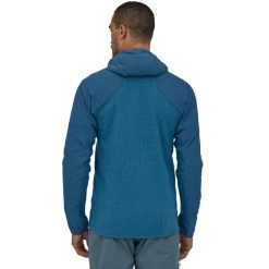 - Empiècements en polaire R1® Air dans le haut et le bas du dos, sur les côtés et sous les bras : pour améliorer la ventilation sous un sac à dos ; fabriqués dans une matière ultrarespirante 100 % polyester recyclé à fibres creuses, avec un motif en zigzag exclusif, qui sèche rapidement et évacue la transpiration