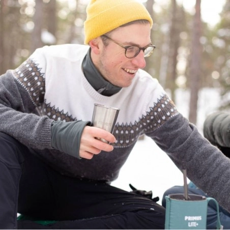 Si vous avez besoin de plusieurs verres ou plusieurs tasses en acier inoxydable et que vous souhaitez gagner de la place, le verre et tasse Primus Drinking Glass s’avère être un très bon choix : il est empilable. Autrement dît, il s’emboite à volonté avec d’autres verres ou tasses Primus Drinking Glass. Si vous voulez gagner encore plus de place, le tout se range facilement dans votre popote de randonnée ou de bivouac (dimensions d’une tasse : 105 x 80 mm).