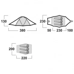 La tente Husky Fighter 3-4 offre un espace de couchage gĂ©nĂ©reux, pour 3 Ă 4 personnes : elle est longue de 220 cm, large de 200 cm et haute de 130 cm (dimensions extĂ©rieures : 380 x 230 x 130 cm). Elle comprend une double entrĂ©e avec moustiquaire, des rangements intĂ©rieurs (poches) ainsi que 2 absides (profondeur respective de 50 cm et 90 cm), utiles pour ranger une partie de votre matĂ©riel de randonnĂ©e ou matĂ©riel de bivouac. Une fois rangĂ©e dans son sac de protection (sac fourni), le volume de la tente n’est plus que de 17 cm de diamètre et 55 cm de long. Le poids total de la tente Husky Fighter 3-4 (avec sac de protection, sardines, piquets, kit de rĂ©paration et arceaux) est raisonnable : il est de 4800 grammes. Remarque importante : la tente Husky Fighter 3-4 se monte facilement et rapidement, en commençant par le toit et en finissant par la chambre intĂ©rieure. De cette manière, vous bĂ©nĂ©ficiez de la meilleure protection, mĂŞme lorsqu’il s’agit d’installer la tente sous la pluie ou sous la neige. En rĂ©sumĂ©, acheter une tente Husky Fighter 3-4, c’est opter pour un modèle taillĂ© pour l’aventure. MatĂ©riaux rĂ©sistants : intĂ©rieur en nylon 190T respirant, moustiquaire en Mesh, double toit en polyester Ripstop 210T avec coutures Ă©tanchĂ©es et enduction PU, tapis en polyester 190T avec Ă©galement coutures Ă©tanchĂ©es et enduction PU.